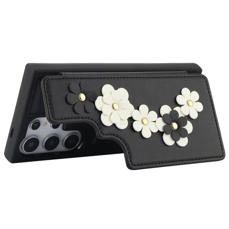 Samsung Galaxy S24 Ultra Hülle mit Blumendekor und Riemen - schwarz