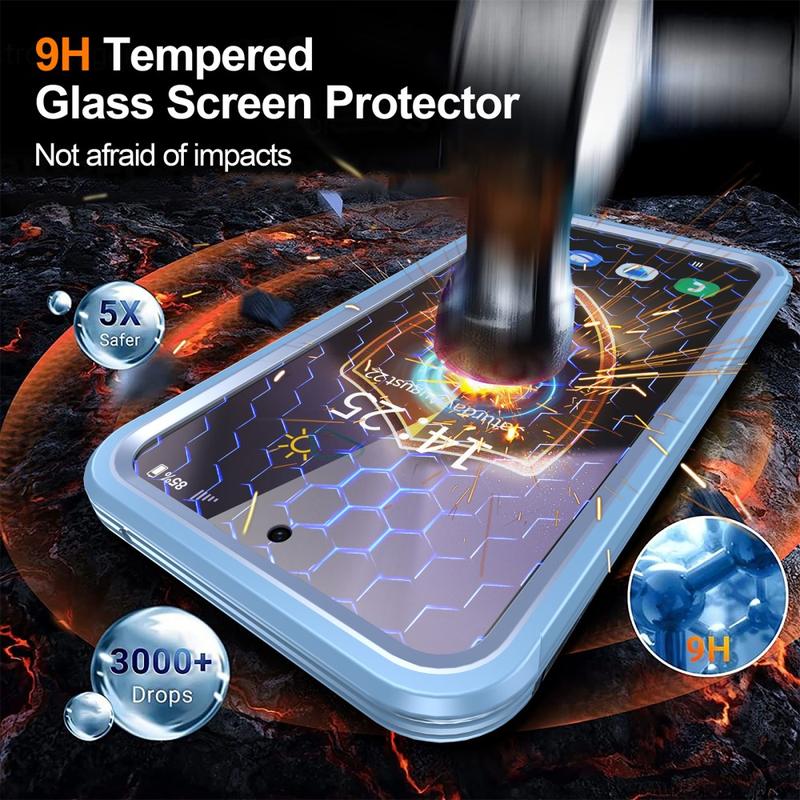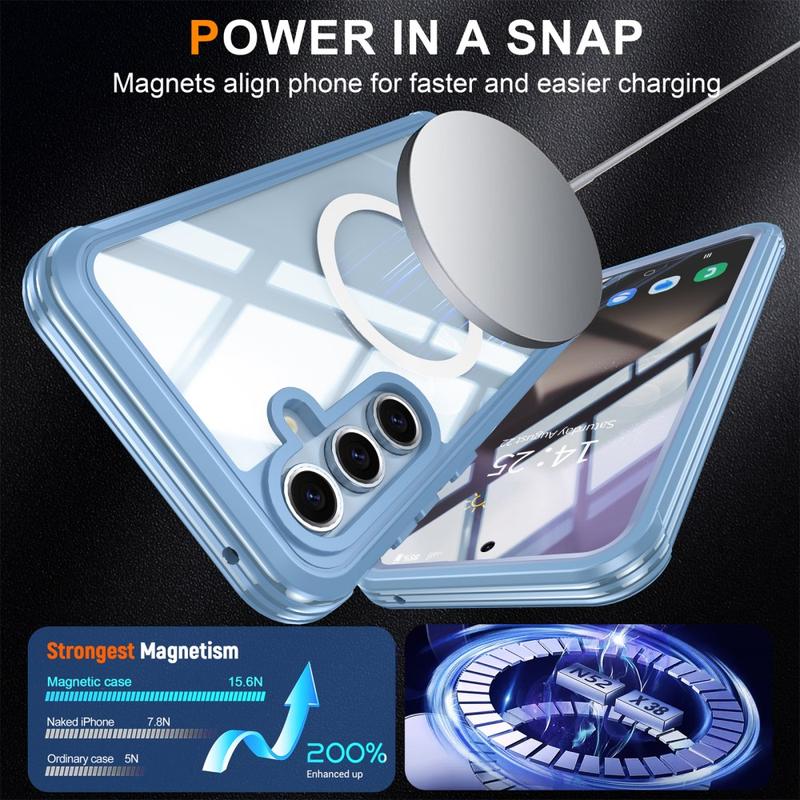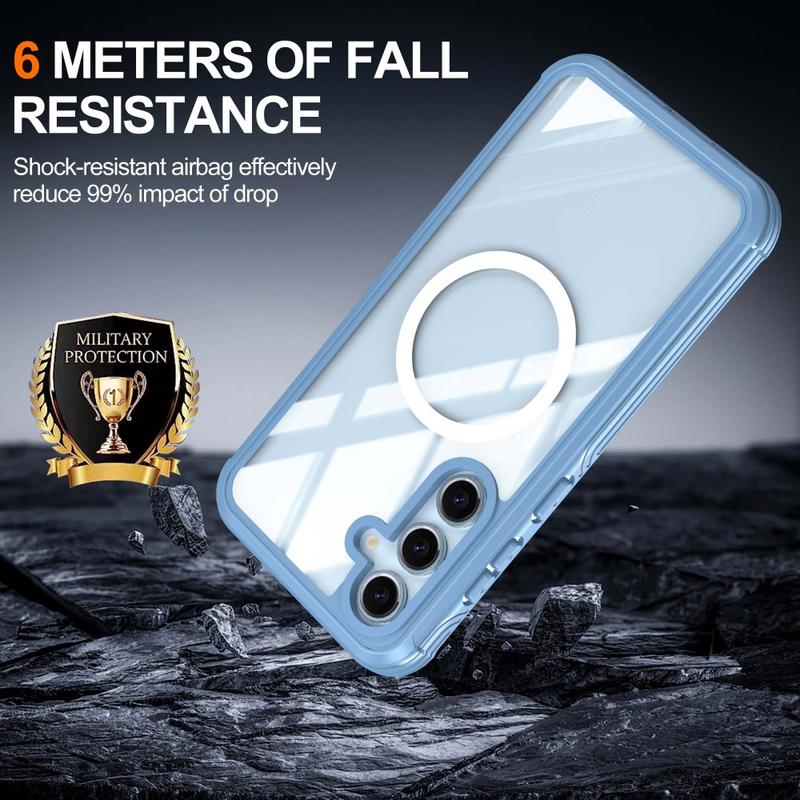 Schützen Sie Ihr Samsung Galaxy S24 FE mit der Kombination aus magnetischer Hülle und gehärteter Glasschutzfolie. Diese zweischichtige Hülle verfügt über eine starke PC-Rückseite und TPU-Kanten für die Stoßdämpfung, während die gehärtete Glasfolie vor Kratzern schützt. Der Magnetverschluss bietet zusätzliche Sicherheit und Komfort für den täglichen Gebrauch, so dass dies eine ideale Wahl für diejenigen, die Schutz und Stil zu priorisieren.