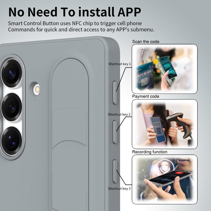 Ausgestattet mit drei intelligenten NFC-fähigen Tasten ermöglicht diese intelligente Hybrid-Hülle den schnellen Zugriff auf Apps wie Kamera, Blitzlicht oder Screenshot mit einem einzigen Druck. Kein Aufladen, keine zusätzlichen Apps - nur einfache, sofortige Funktionalität.