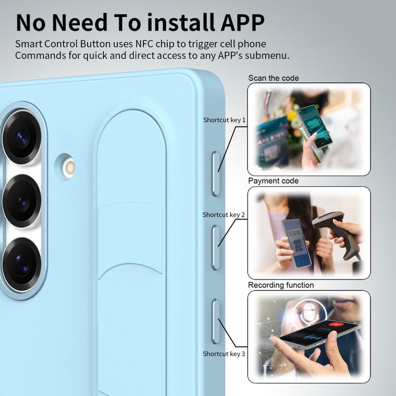 Ausgestattet mit drei intelligenten NFC-fähigen Tasten ermöglicht diese intelligente Hybrid-Hülle den schnellen Zugriff auf Apps wie Kamera, Blitzlicht oder Screenshot mit einem einzigen Druck. Kein Aufladen, keine zusätzlichen Apps - nur einfache, sofortige Funktionalität.