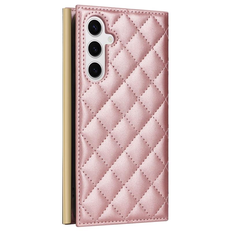 Schützen Sie Ihr Samsung Galaxy S24 mit dieser luxuriösen gesteppten Brieftaschenhülle. Hergestellt aus TPU-Material mit PU-Leder beschichtet, ist diese Hülle kratzfest und Anti-Fingerabdruck, so dass Ihr Telefon stilvoll und elegant aussieht. Die Stepplinie bildet ein Rautenmuster, das der Hülle einen modischen und schönen Touch verleiht. Der erhöhte Rand der Kamera und des Bildschirms bietet effektiven Schutz vor Kratzern, während die präzisen Aussparungen vollen Zugang zu allen Tasten, Anschlüssen und anderen Funktionen bieten. Das Brieftaschendesign ermöglicht die einfache Aufbewahrung von wichtigen Karten und Bargeld, und die mitgelieferten Saugnäpfe können als Ständer für die freihändige Nutzung verwendet werden. Die Tasche bietet zusätzlichen Schutz vor Kratzern, Stößen, Stürzen und alltäglichen Beschädigungen und wird mit einem Schulter- und einem Handgelenkriemen geliefert, die für zusätzlichen Komfort sorgen.