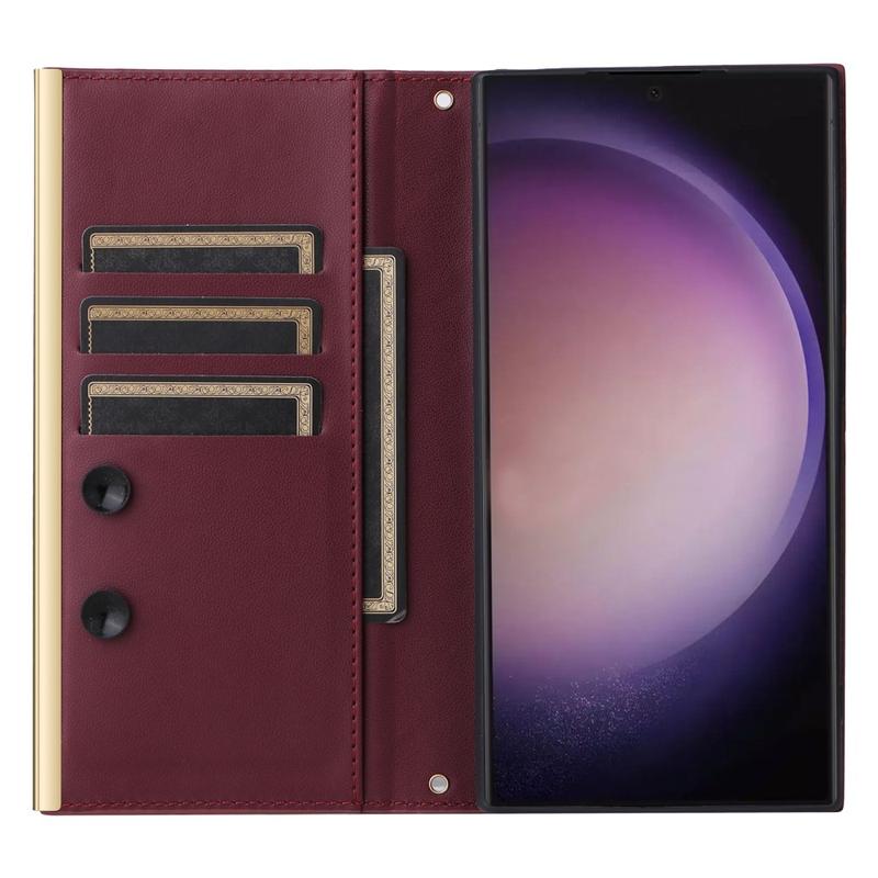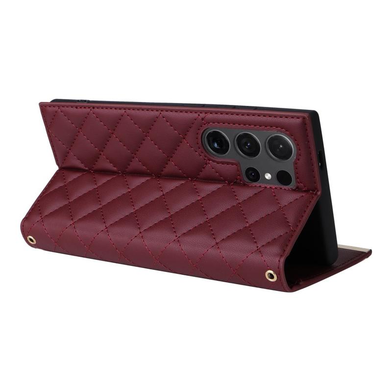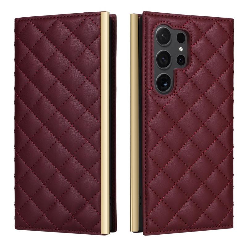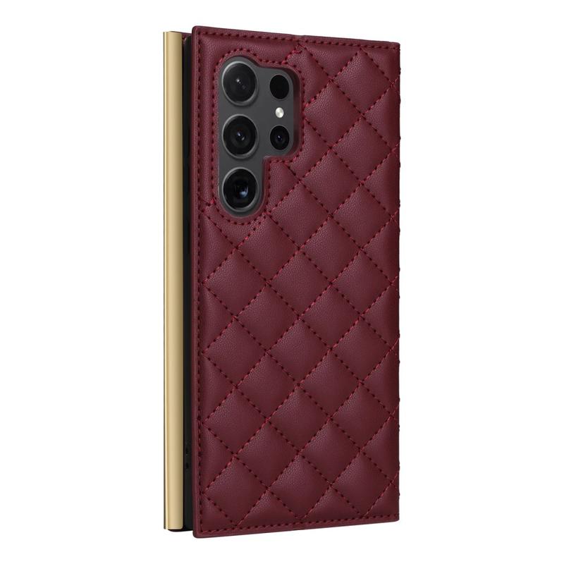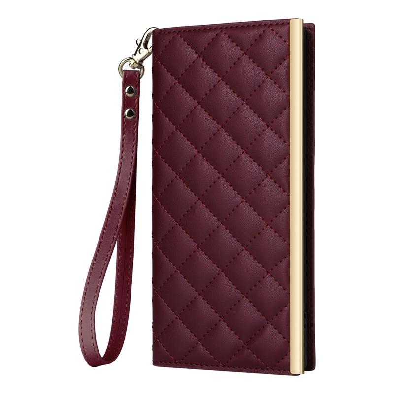 Samsung Galaxy S24 Ultra Luxus Gesteppte Wallet Hülle - Weinrot
