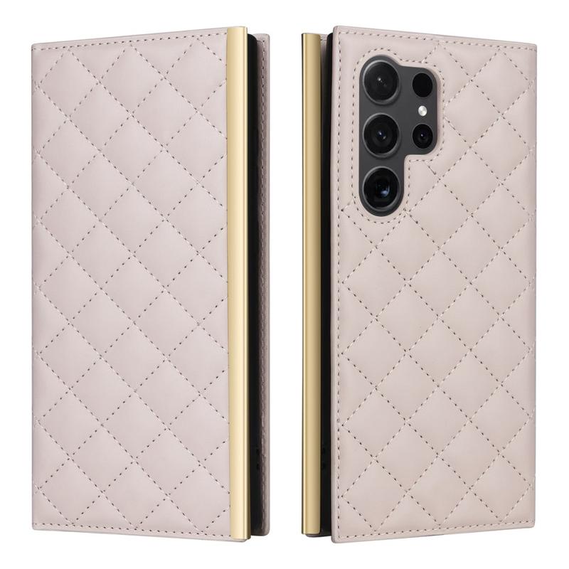 Schützen Sie Ihr Samsung Galaxy S24 Ultra mit dieser luxuriösen gesteppten Brieftaschenhülle. Hergestellt aus TPU-Material mit PU-Leder beschichtet, ist diese Hülle kratzfest und Anti-Fingerabdruck, so dass Ihr Telefon stilvoll und elegant aussieht. Die Stepplinie bildet ein Rautenmuster, das der Hülle einen modischen und schönen Touch verleiht. Der erhöhte Rand der Kamera und des Bildschirms bietet effektiven Schutz vor Kratzern, während die präzisen Aussparungen vollen Zugang zu allen Tasten, Anschlüssen und anderen Funktionen bieten. Das Brieftaschendesign ermöglicht die einfache Aufbewahrung von wichtigen Karten und Bargeld, und die mitgelieferten Saugnäpfe können als Ständer für die freihändige Nutzung verwendet werden. Die Tasche bietet zusätzlichen Schutz vor Kratzern, Stößen, Stürzen und alltäglichen Beschädigungen und wird mit einem Schulter- und einem Handgelenkriemen geliefert, die für zusätzlichen Komfort sorgen.