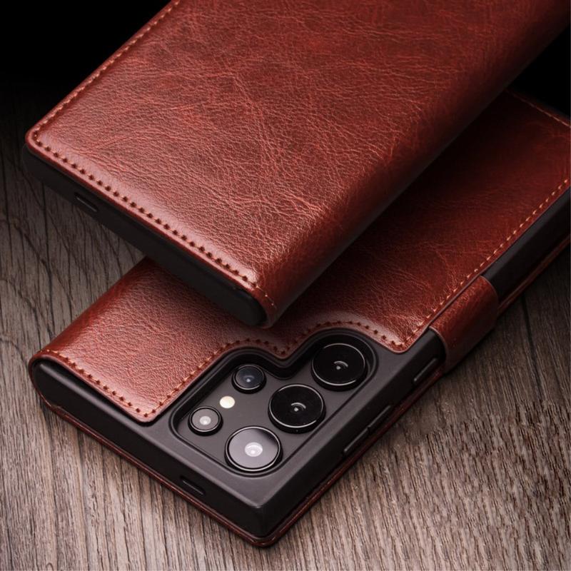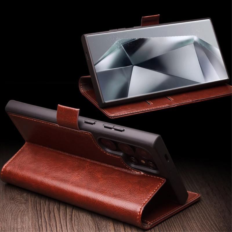 • Qialino Classic Lederhülle mit Geldbörse für Samsung Galaxy S24 Ultra