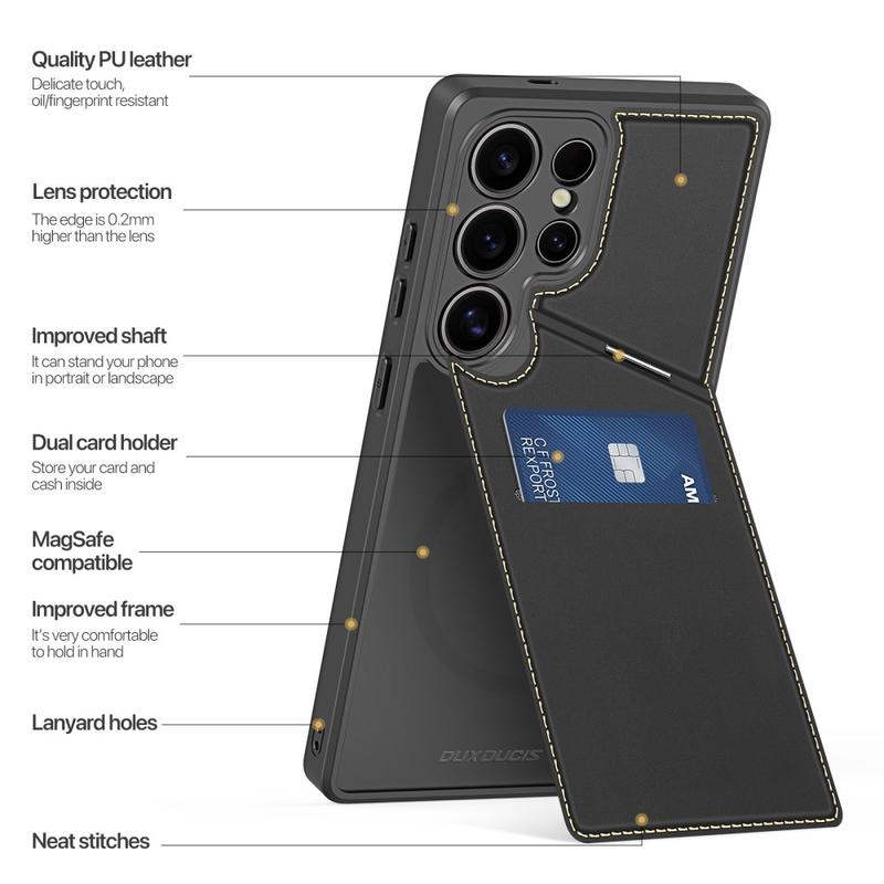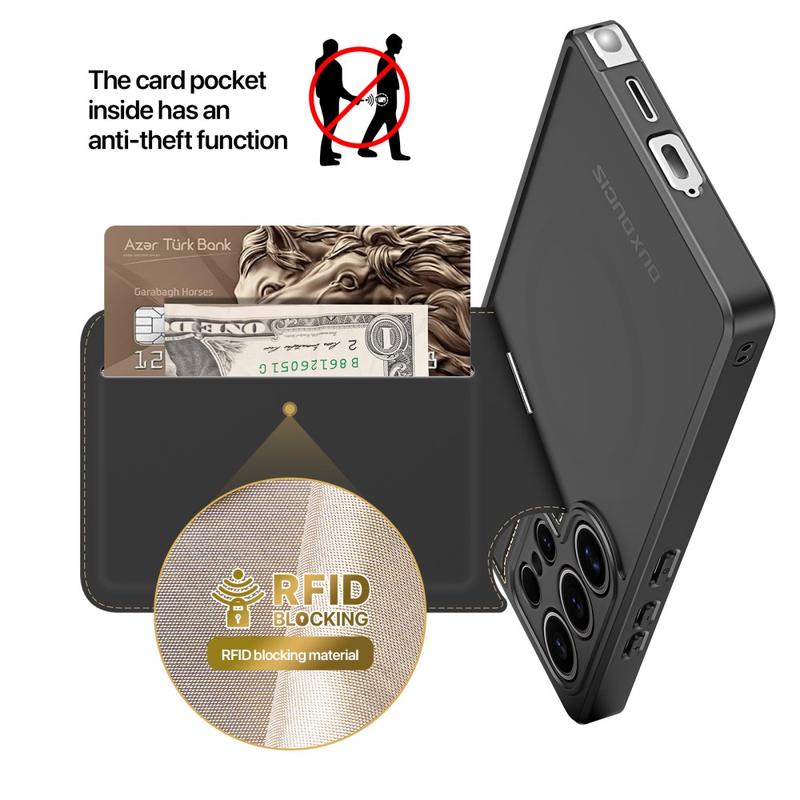 Samsung Galaxy S25 Ultra Dux Ducis Rafi II Magnetische Hülle mit Kickstand und Kartenschlitzen - Schwarz
