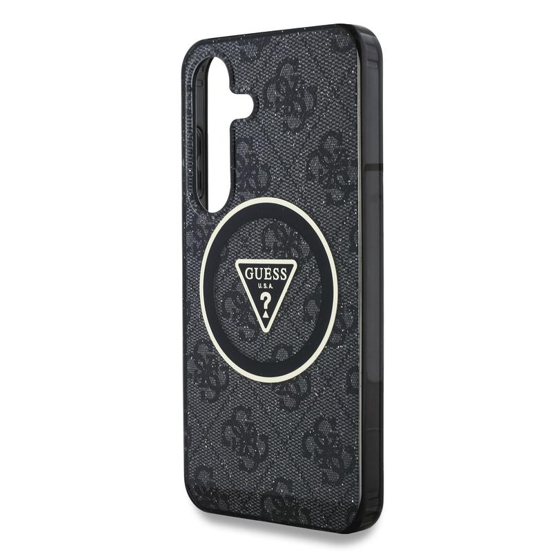 Samsung Galaxy S25 Guess 4G Glitter Triangle Buttons MagSafe Hülle - schwarz