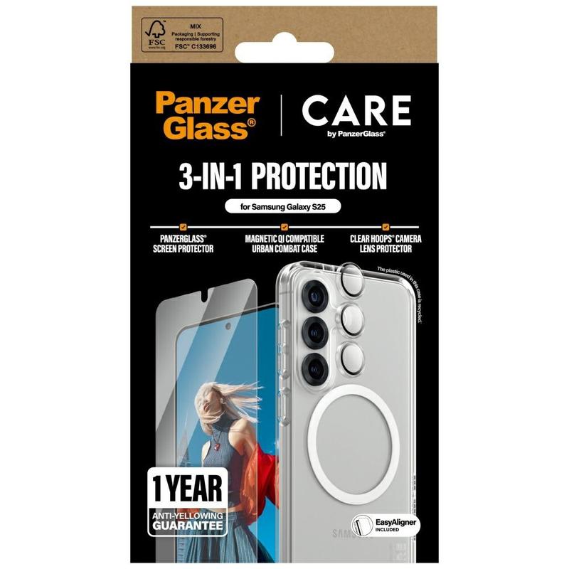 Care by PanzerGlass Flagship 3-in-1 Schutz-Bundle für Samsung Galaxy S25 - MagSafe Urban Combat Case, Ultra-Wide Fit Tempered Glass Screen Protector & Hoops Camera Lens Protector