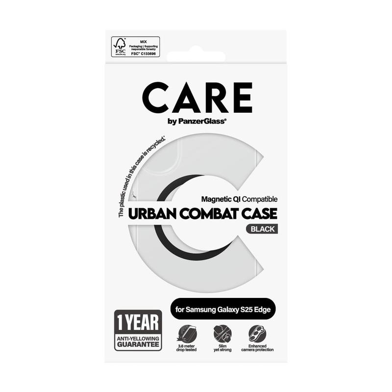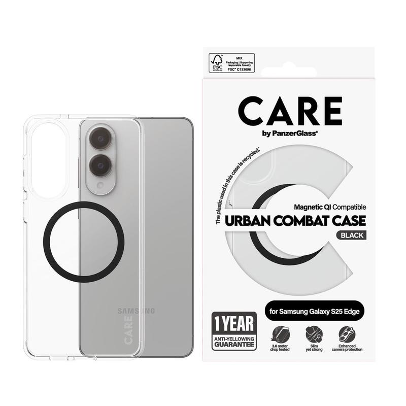 Samsung Galaxy S25 Edge PanzerGlass Care Transparent Urban Combat Hülle - MagSafe-kompatibel - Schwarz