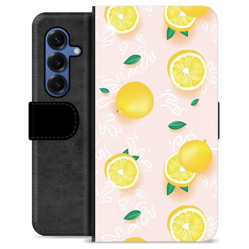 Samsung Galaxy S25 Premium Schutzhülle mit Geldbörse - Zitronen-Muster