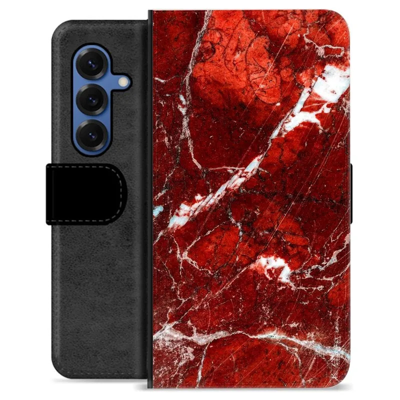 Samsung Galaxy S25 Premium Schutzhülle mit Geldbörse - Roter Marmor