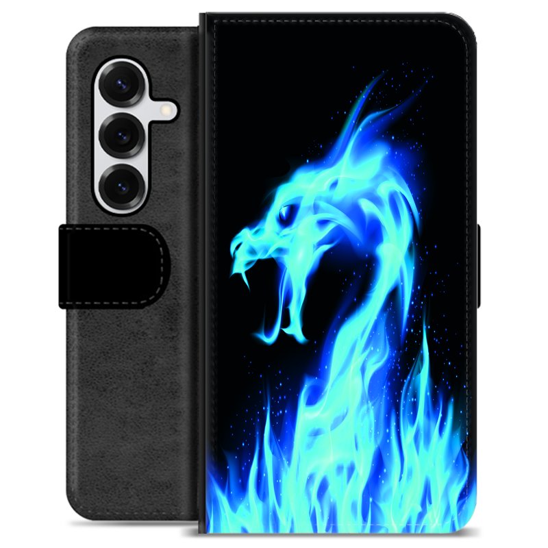 Samsung Galaxy S25+ Premium Schutzhülle mit Geldbörse - Blauer Feuerdrache
