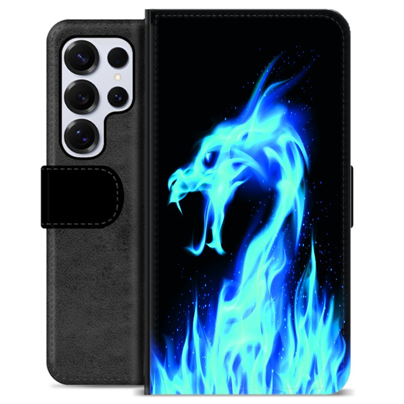 Samsung Galaxy S25 Ultra Premium Schutzhülle mit Geldbörse - Blauer Feuerdrache