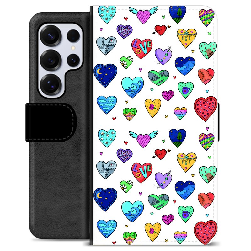 Samsung Galaxy S25 Ultra Premium Schutzhülle mit Geldbörse - Herzen