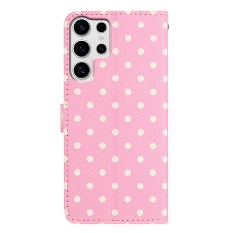 Samsung Galaxy S25 Ultra Polka-Dot-Muster Wallet Hülle - Rosa