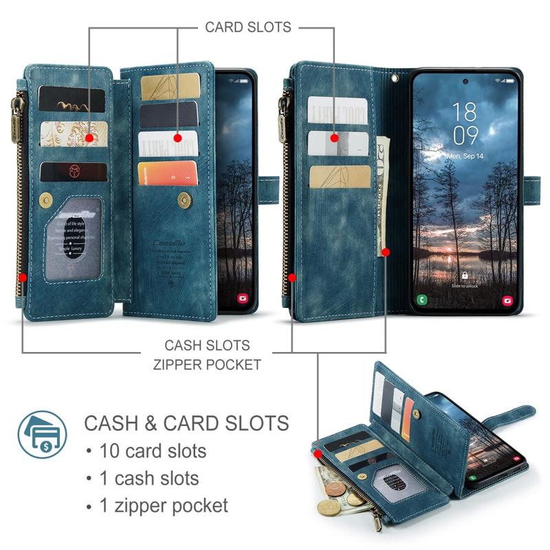 Die Caseme C30 multifunktionale Brieftaschenhülle für das Samsung Galaxy S25 Edge bietet außergewöhnlichen Rundumschutz und ein exklusives, raffiniertes Design. Diese elegante Hülle besteht aus hochwertigem Polyurethan, verstärkt mit einer stoßfesten TPU-Innenhülle, die sich perfekt an Ihr Samsung Galaxy S25 Edge anschmiegt. Die Caseme C30 Brieftasche ist mit zahlreichen Kartenfächern, einem großen Geldfach innen und einer Außentasche mit Reißverschluss ausgestattet, die alle durch einen sicheren Magnetverschluss geschützt sind.