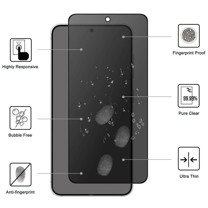 - Vollständiger Sichtschutz aus gehärtetem Glas für das Samsung Galaxy S25 Edge
