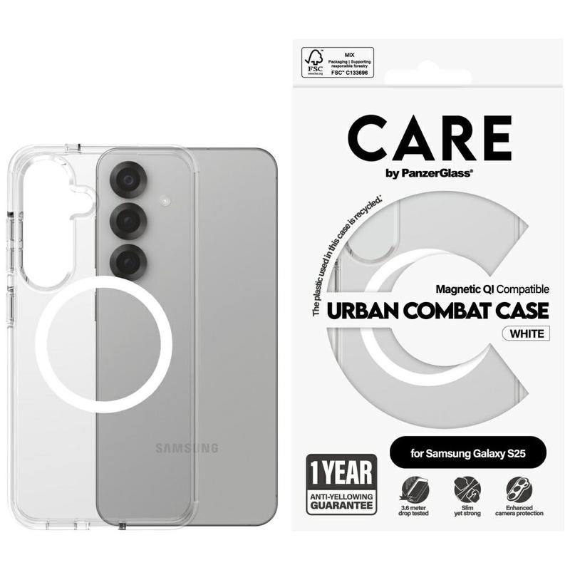 Samsung Galaxy S25 PanzerGlass Care Urban Combat Hülle - MagSafe kompatibel - Weiß / Durchsichtig