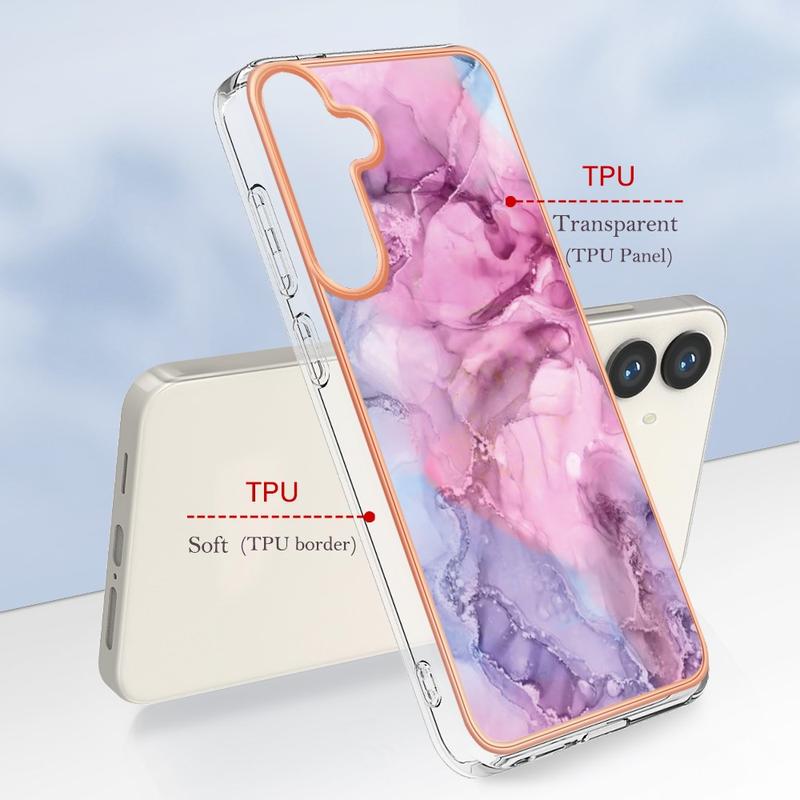 Samsung Galaxy S25+ Galvanisierte IMD TPU-Hülle mit Marmormuster - Blau / Rosa