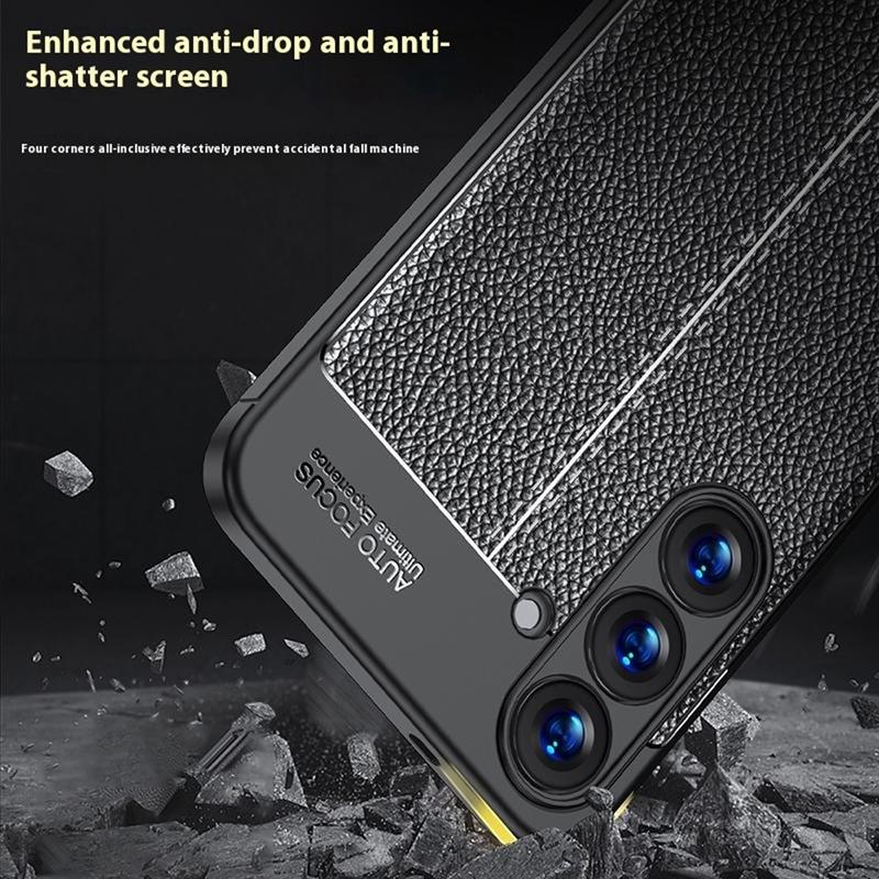 Das flexible Material absorbiert Stöße und hält Ihren Samsung Galaxy S25+ sicher vor Beulen und Stürzen. Die Textur auf der Rückseite verleiht ihm einen edlen Look und lässt Ihr Smartphone auffallen.