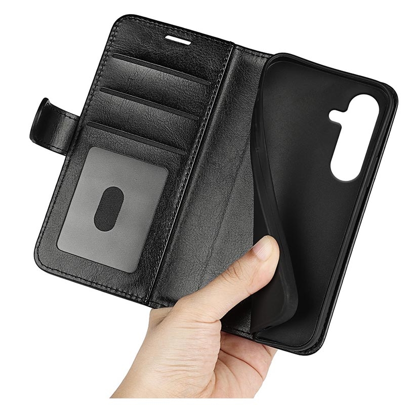 Dieses Etui für die Samsung Galaxy S25+ ist elegant und passt zu jeder Gelegenheit. Sie ist mit mehreren Kartenfächern und einem Bargeldfach ausgestattet. Genießen Sie das Ansehen von Videos auf dem TikTok oder YouTube, dank des integrierten Medienständers.