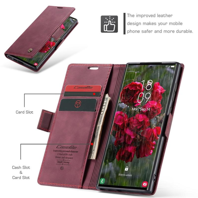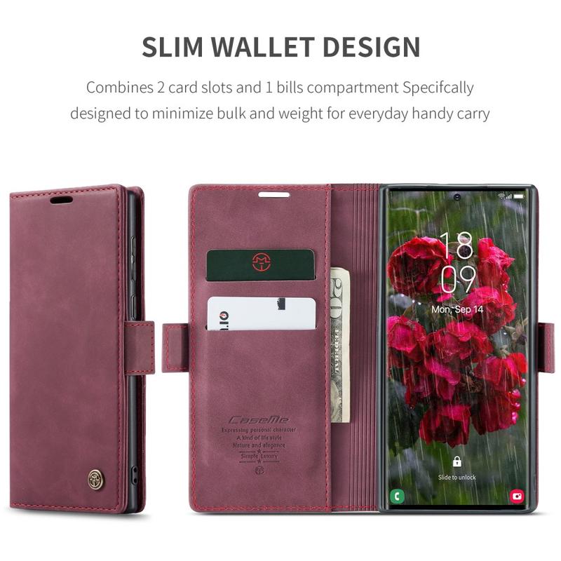 Samsung Galaxy S25 Ultra Caseme 013 Serie Schutzhülle mit Geldbörse - Weinrot