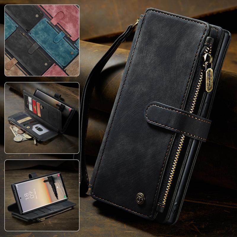 Die Caseme C30 multifunktionale Brieftaschenhülle für das Samsung Galaxy S25 Ultra bietet außergewöhnlichen Rundumschutz und ein exklusives, raffiniertes Design. Diese elegante Hülle besteht aus hochwertigem Polyurethan, verstärkt mit einer stoßfesten TPU-Innenhülle, die sich perfekt an Ihr Samsung Galaxy S25 Ultra anschmiegt. Die Caseme C30 Brieftasche ist mit zahlreichen Kartenfächern, einem großen Geldfach innen und einer Außentasche mit Reißverschluss ausgestattet, die alle durch einen sicheren Magnetverschluss geschützt sind.