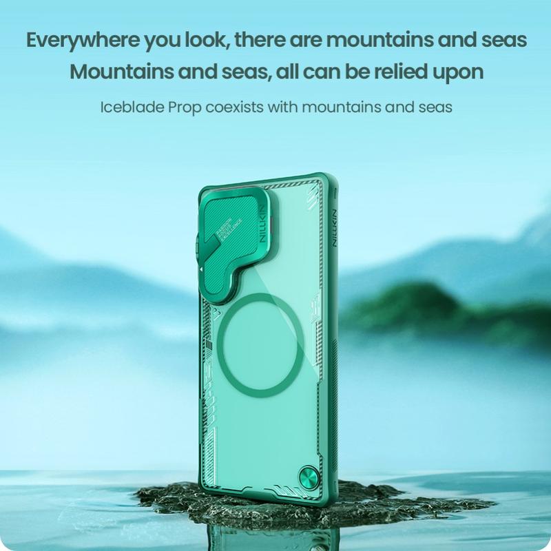 Samsung Galaxy S25 Ultra Nillkin IceBlade Prop Magnetisch Hülle - MagSafe-kompatibel, Slide Lens Deckel - Grün
