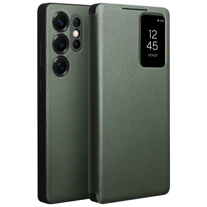 Das luxuriöse Qialino Smart View Flip Case für das Samsung Galaxy S25 Ultra ist aus echtem Rindsleder gefertigt und sorgt für herausragenden Stil und Eleganz. Dieses schlanke, edle Leder-Flip-Case unterstützt die intelligente Weck- und Schlaffunktion Ihres Samsung Galaxy S25 Ultra. Das kleine Sichtfenster auf der Vorderseite ermöglicht Ihnen einen schnellen Blick auf die Displayinformationen. Es passt perfekt zur Form Ihres Samsung Galaxy S25 Ultra und bewahrt so dessen volle Funktionalität.