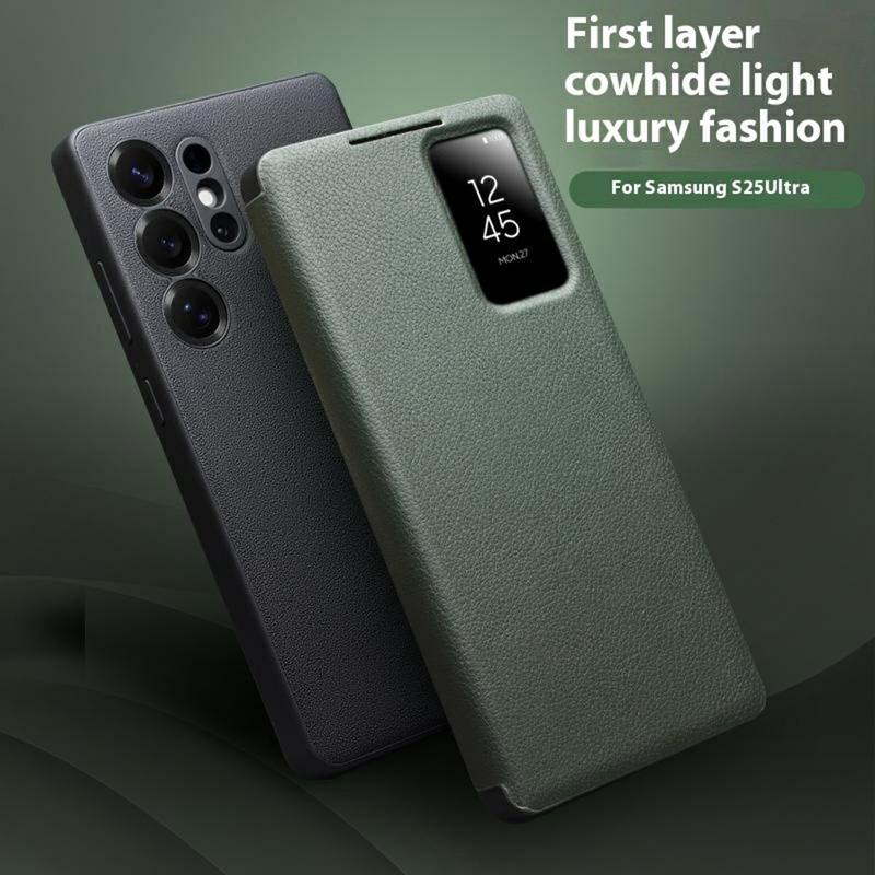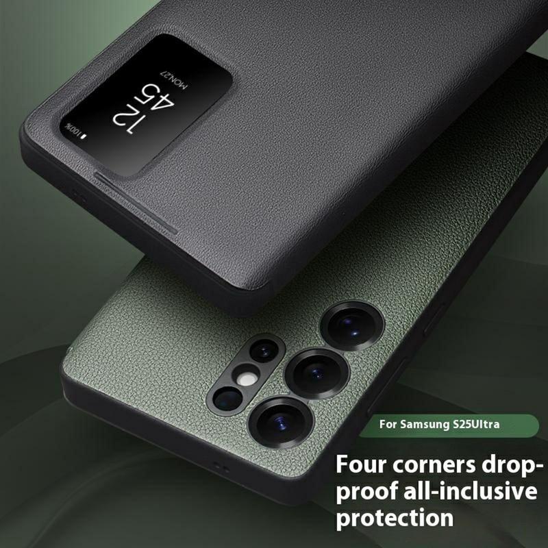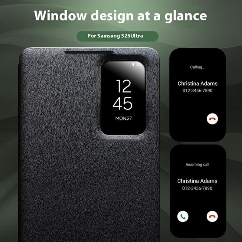 • Qialino Smart View Leder Flip Hülle für Samsung Galaxy S25 Ultra