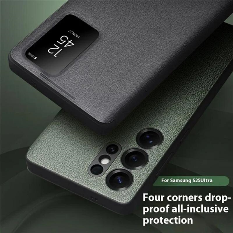 Das luxuriöse Qialino Smart View Flip Case für das Samsung Galaxy S25 Ultra ist aus echtem Rindsleder gefertigt und sorgt für herausragenden Stil und Eleganz. Dieses schlanke, edle Leder-Flip-Case unterstützt die intelligente Weck- und Schlaffunktion Ihres Samsung Galaxy S25 Ultra. Das kleine Sichtfenster auf der Vorderseite ermöglicht Ihnen einen schnellen Blick auf die Displayinformationen. Es passt perfekt zur Form Ihres Samsung Galaxy S25 Ultra und bewahrt so dessen volle Funktionalität.
