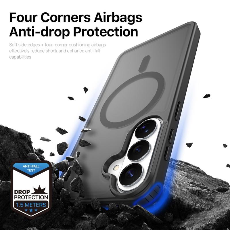 Schützen Sie Ihr Samsung Galaxy S26 mit einer eleganten, matten Hülle, die sich direkt auf MagSafe-Ladegeräte und -Zubehör aufstecken lässt. Die Yind Serie kombiniert eine kratzfeste PC-Rückseite mit stoßabsorbierenden TPU-Kanten und einem präzise ausgerichteten Magnetring und bietet kabellose Stromversorgung und Rundumschutz bei Stürzen ohne sperrige Taschen.