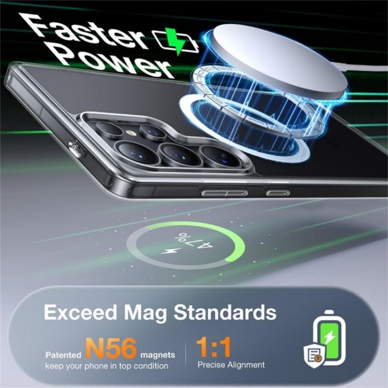 Integrierte hochfeste Magnete sorgen für eine sichere und stabile Verbindung mit magnetischen Ladegeräten, Autohalterungen und anderem kompatiblen Zubehör. Die magnetische Ausrichtung ermöglicht nahtloses kabelloses Laden und eine zuverlässige Befestigung, ohne dass das Gehäuse entfernt werden muss.