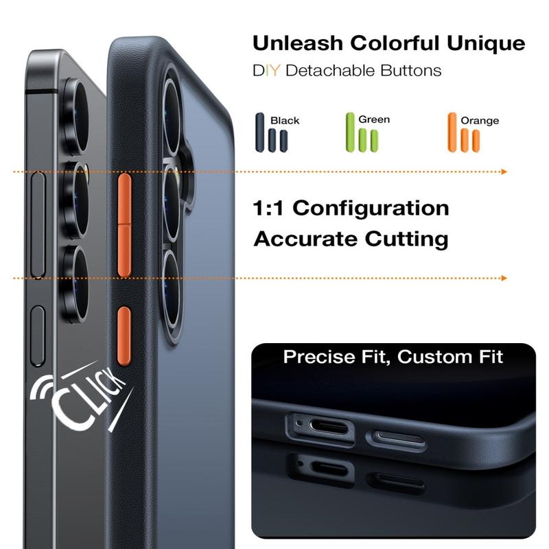 Die Hülle enthält drei austauschbare Tastensätze, mit denen du das Aussehen deines Samsung Galaxy S26+ individuell gestalten kannst. Tauschen Sie die Tasten einfach aus, um sie an Ihren Stil, Ihr Outfit oder Ihre Stimmung anzupassen und ein einzigartiges, individuelles Aussehen zu schaffen.