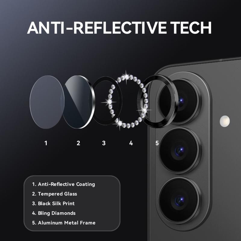 Verleihen Sie Ihrem Samsung Galaxy S26 mit dem NORTHJO Kameraobjektivschutz Glanz und Schutz. Mit schimmernden Strasssteinen und präzisionsgeschliffenem, gehärtetem Glas schützt er Ihr Kameraobjektiv vor Kratzern, Staub und Stößen und verleiht ihm einen Hauch von Eleganz und Luxus.