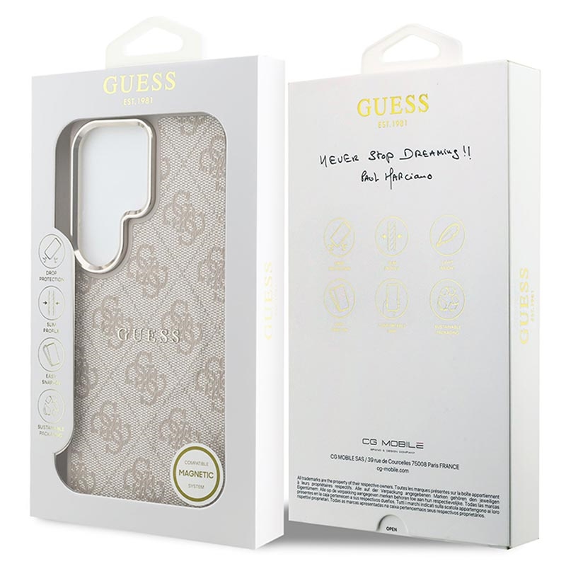 Guess 4G Gold Frame MagSafe Hülle für Samsung Galaxy S26 Ultra - Schlanke Schutzhülle, Polyurethan, unterstützt kabelloses Laden
