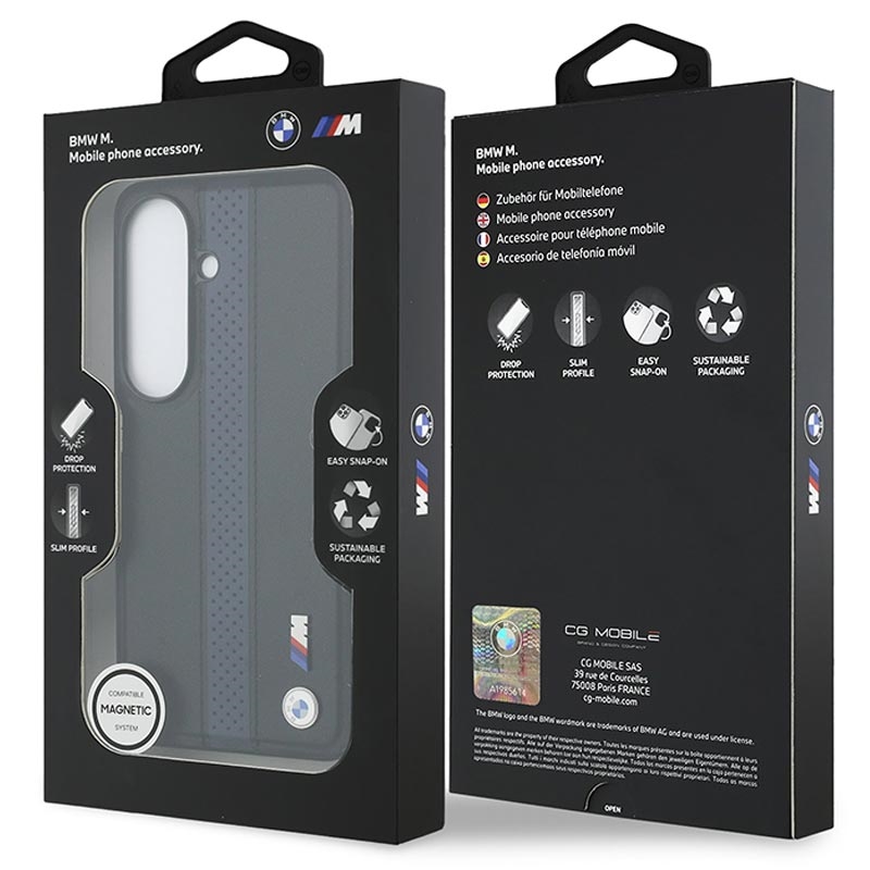 Werten Sie Ihr Samsung Galaxy S26 mit der magnetischen Hülle mit perforierten Streifen und Metalllogo von BMW M auf, die für alle entwickelt wurde, die sportlichen Luxus und hochwertige Details schätzen. Mit ihrem eleganten Design mit perforierten Streifen und einem BMW Logo aus Metall verbindet diese Hülle eine vom Automobilbau inspirierte Ästhetik mit praktischem Schutz für den Alltag. Sie besteht aus hochwertigem PU-Material und bietet eine edle Verarbeitung, sicheren Halt und lange Haltbarkeit in einem schlanken Profil.