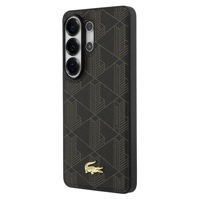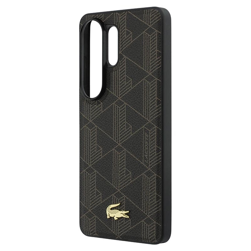 Samsung Galaxy S26 Ultra Lacoste PVC Blend Monogram Gold Logo Magnethülle - Braun