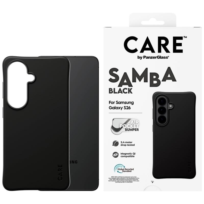 • Care by PanzerGlass Samba Magnetische Hülle für Samsung Galaxy S26 - 100 % recyceltes TPU, selbstheilend, fallgetestet aus 2,4 m Höhe, Qi-kompatibel