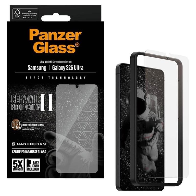 PanzerGlass Ceramic II Protection Ultra-Wide Fit EasyAligner Panzerglas für Samsung Galaxy S26 Ultra - Glaskeramik, fingerabdruckresistent, casefreundlich