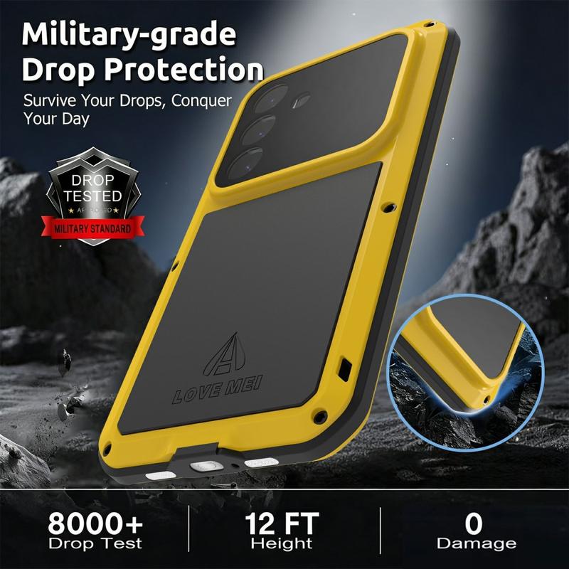 Die Love Mei Powerful Hybridhülle verwandelt dein Samsung Galaxy S26 in eine Festung. Mit der Kombination aus militärischem Schutz, Präzisionsmechanik und kabellosem Ladekomfort ist Ihr Telefon für alles gerüstet - vom Stadtleben bis hin zu extremen Bedingungen.
