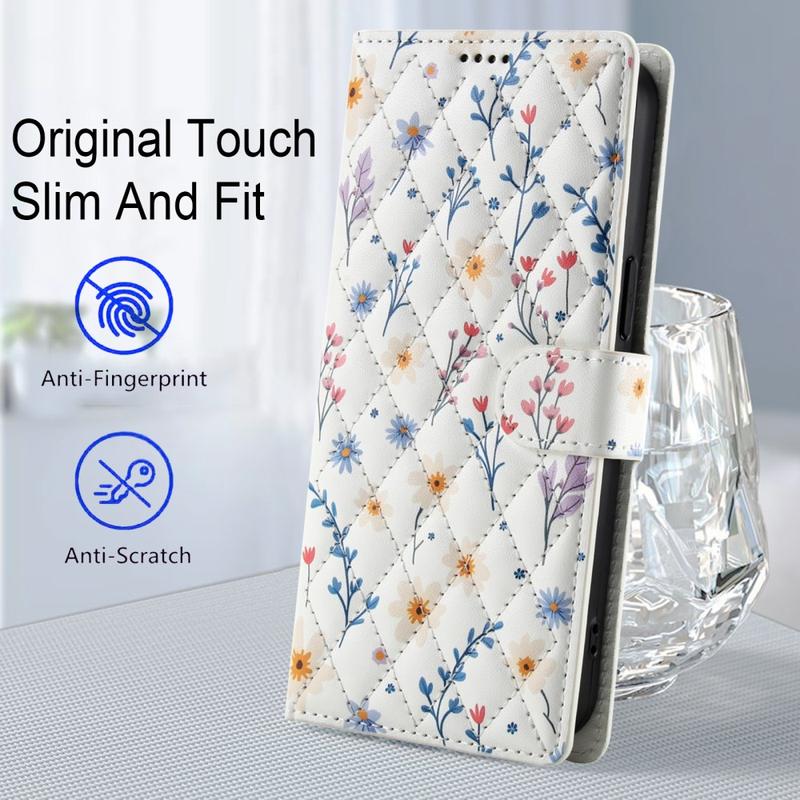 Erfrischen Sie Ihr Samsung Galaxy S26 Pro mit einem schlanken Flip Wallet, das sicheren Schutz mit Alltagstauglichkeit verbindet. Die rautenförmig genähte Vorderseite und das winzige Blumenmuster sorgen für eleganten Stil, während eine weiche TPU-Schale Stürze abfedert und eine Polyurethanhülle vor Kratzern schützt. Mehrere Kartenfächer, ein Fach für Bargeld und eine mitgelieferte Handschlaufe machen diese Tasche zu einer Komplettlösung für unterwegs, auf Reisen oder beim Ausgehen.