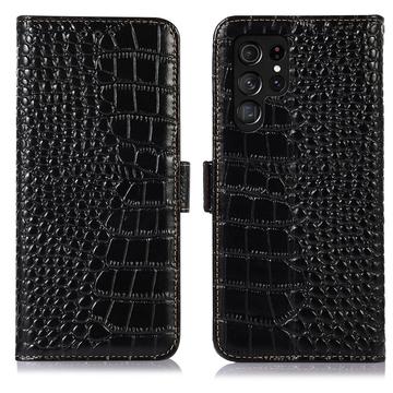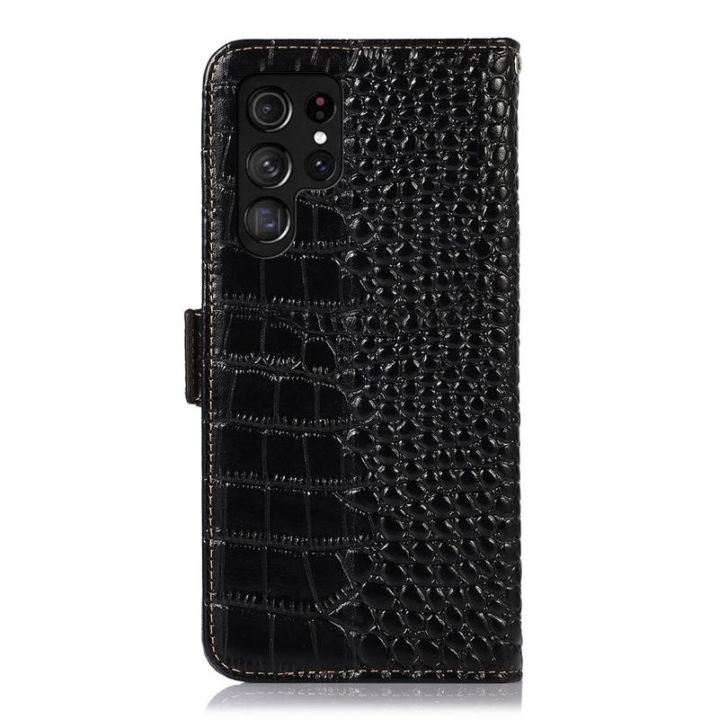 Crocodile Serie Lederhülle mit Geldbörse mit RFID für Samsung Galaxy S26 Ultra