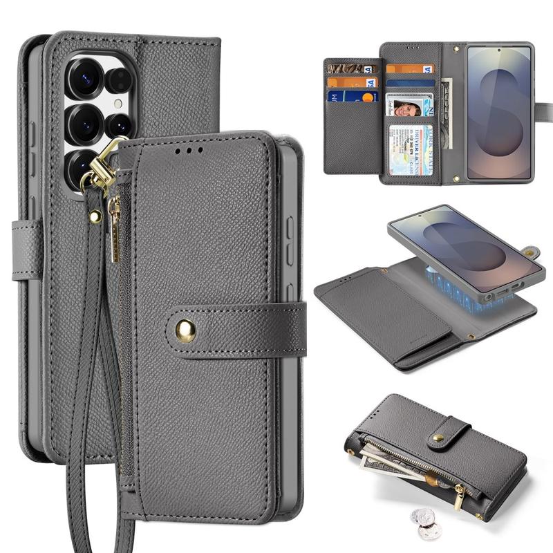 Werten Sie Ihr Samsung Galaxy S26 Ultra mit dem Dux Ducis Lawa Series Magnetic Case auf, einem hochwertigen Accessoire, das Stil und Funktionalität vereint. Dieses schwarze Etui aus echtem Rindsleder verfügt über eine abnehmbare Reißverschlusstasche, in der Sie Ihre wichtigsten Utensilien sicher aufbewahren können. Das magnetische Design ermöglicht ein einfaches Anbringen und Abnehmen und bietet Flexibilität für den täglichen Gebrauch. Mit ihrer schlanken und robusten Konstruktion bietet diese Tasche umfassenden Schutz für Ihr Gerät und sieht dabei auch noch gut aus.