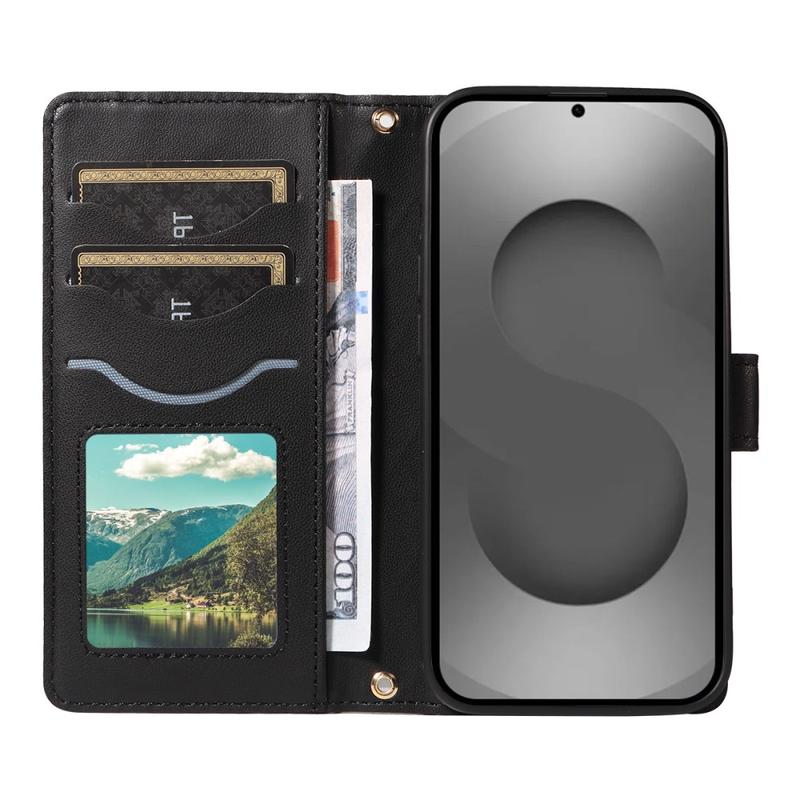 Samsung Galaxy S26 Ultra Luxus Gesteppte Wallet Hülle - schwarz