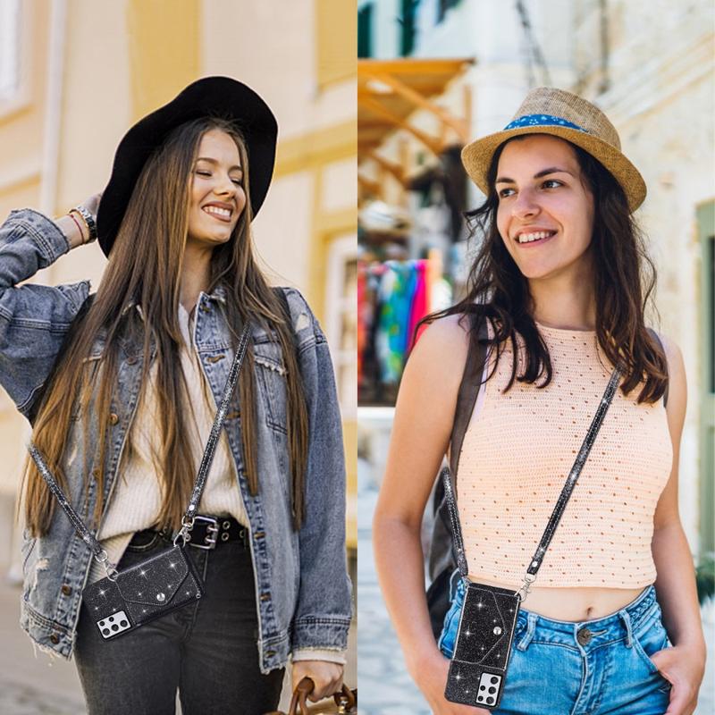 Die hochwertige Hülle aus der Stardust-Serie ist die richtige Wahl, um Ihr Samsung Galaxy S26 Ultra vor möglichen Schäden zu schützen. Es hat einen Kartenhalter auf der Rückseite mit einem Druckknopf, der großartig ist, um Ihre wichtigen Karten aufzubewahren und sicher aufzubewahren. Eine glänzende Glitzeroberfläche verleiht Ihrem Telefon einen Hauch von Glamour. Darüber hinaus wird die Hülle mit einem 150cm langen Schultergurt geliefert, mit dem Sie Ihr Samsung Galaxy S26 Ultra überall hin mitnehmen können.
