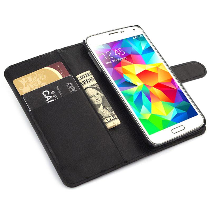 Dieses auf Zweckmäßigkeit ausgelegte Etui im Brieftaschenstil schützt Ihr Gerät zusammen mit Ihren Kreditkarten und Ihrem Bargeld.