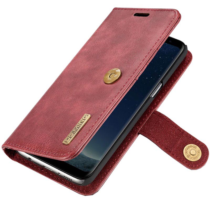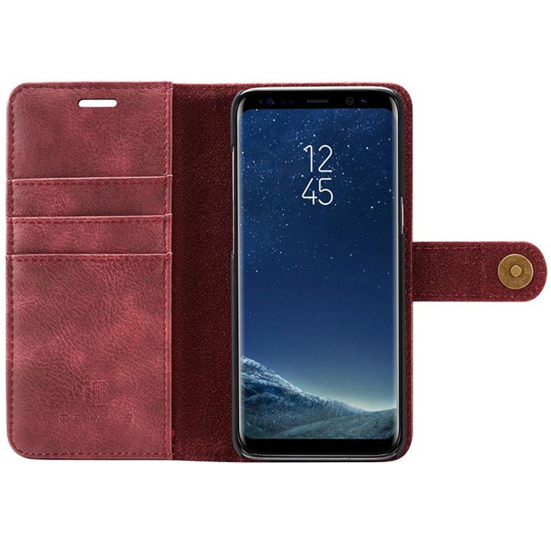 DG.Ming 2-in-1 Geldbörse Hülle für Samsung Galaxy S8+ ist eine ausgezeichnete Kombination aus einer Ledertasche und einem abnehmbaren magnetischen Cover. Diese Hülle ist multifunktional, mit Kartenfächern und einer Tasche für Geld, hält alles zusammen. Metall-Snap-on-Verschluss sorgt für zusätzliche Sicherheit und macht es möglich, die Tasche zum Stativ für die freihändige Verwendung zu falten. Sein ausgezeichnetes Design, mit Spaltleder beschichtet, fühlt sich gut in der Hand.