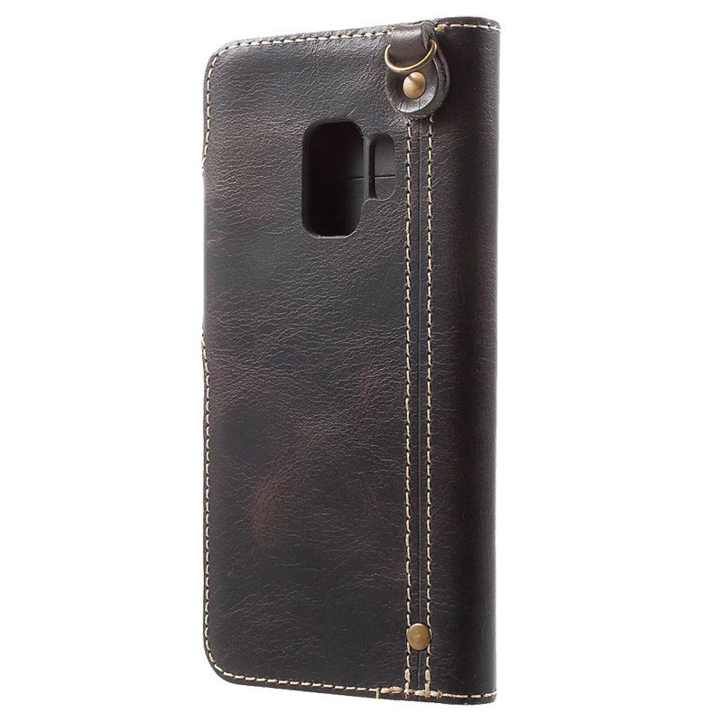 - Eine Lederhülle im Retro-Stil für Galaxy S9 aus echtem Leder