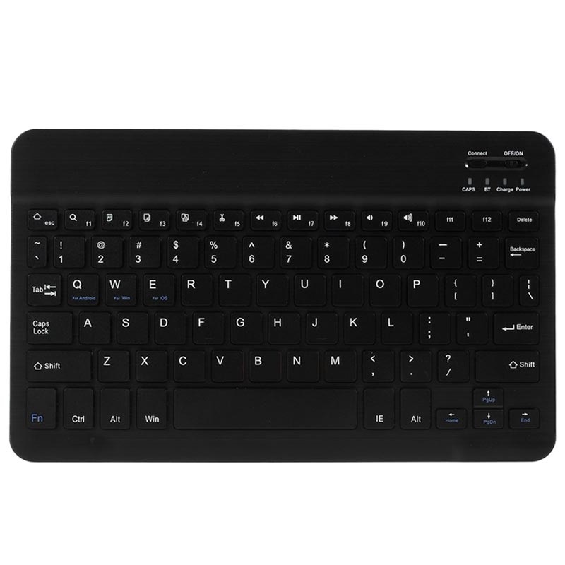 - Die Bluetooth-Tastatur verfügt auch über ein QWERTY-Layout und einen eingebauten Akku