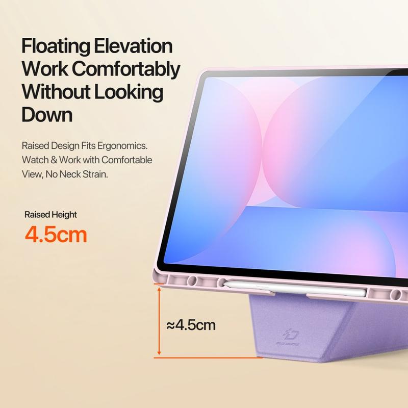 Verwandeln Sie Ihr Samsung Galaxy Tab S10 FE+ in eine vielseitige Workstation. Die DUX DUCIS Vers Series Hülle hebt das Tablet für eine ermüdungsfreie Betrachtung um etwa 4,5 cm an, schützt es vor täglichen Stößen und passt dank ihrer federleichten Bauweise in jede Tasche. Ob beim Fernsehen oder beim Skizzieren - diese faltbare Hülle passt sich in Sekundenschnelle an.